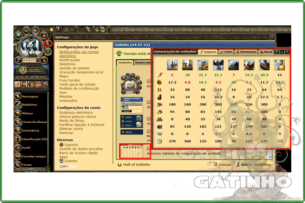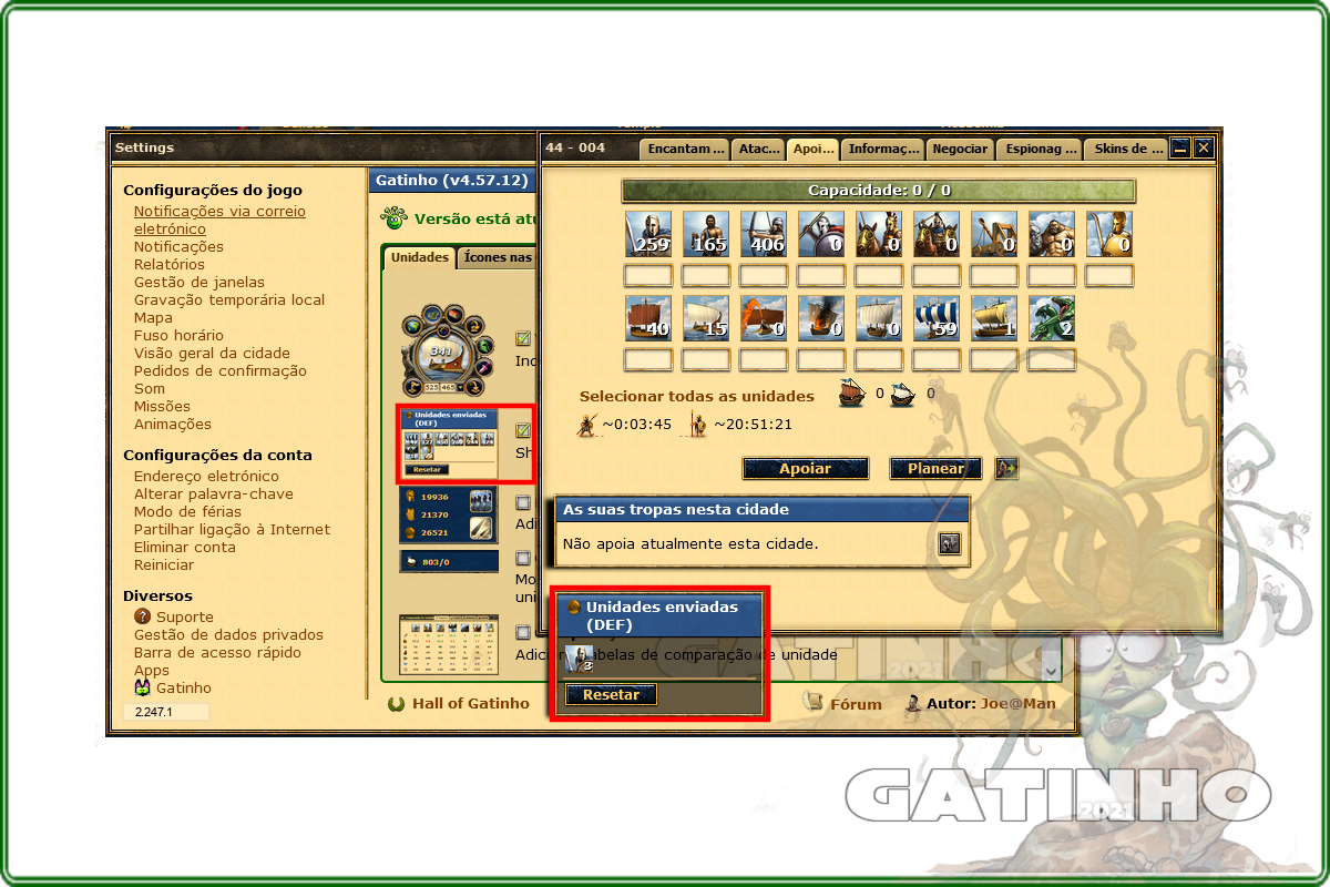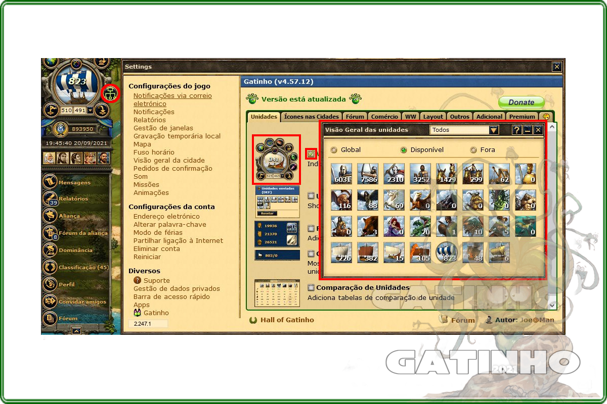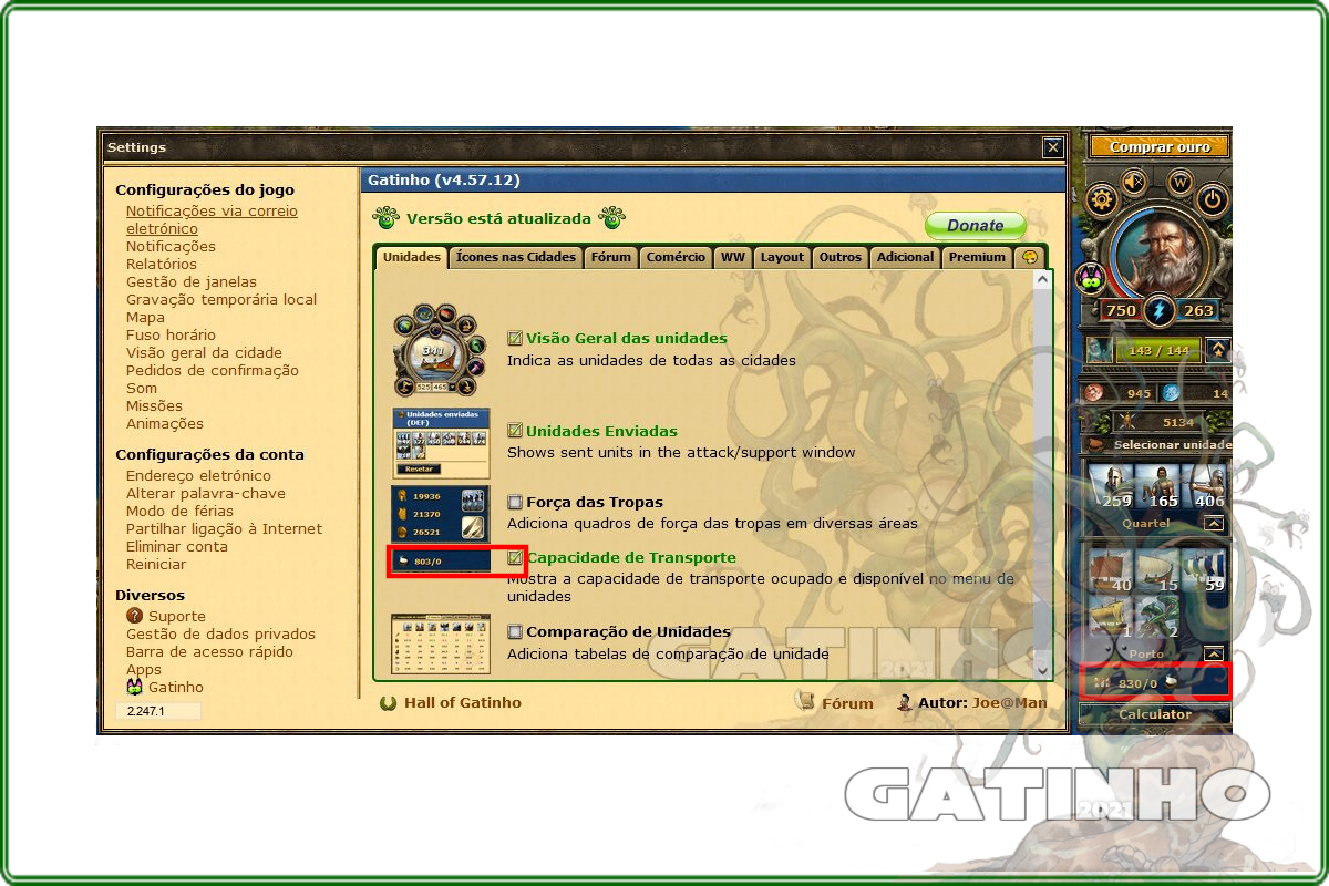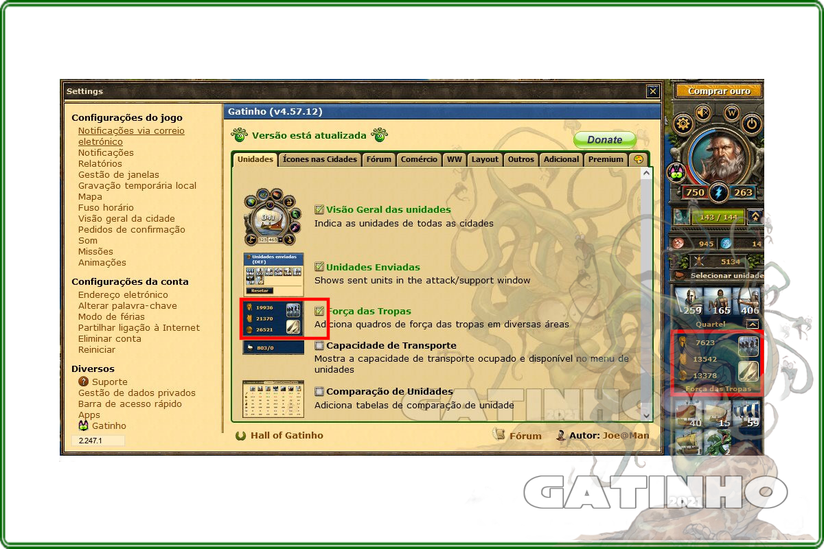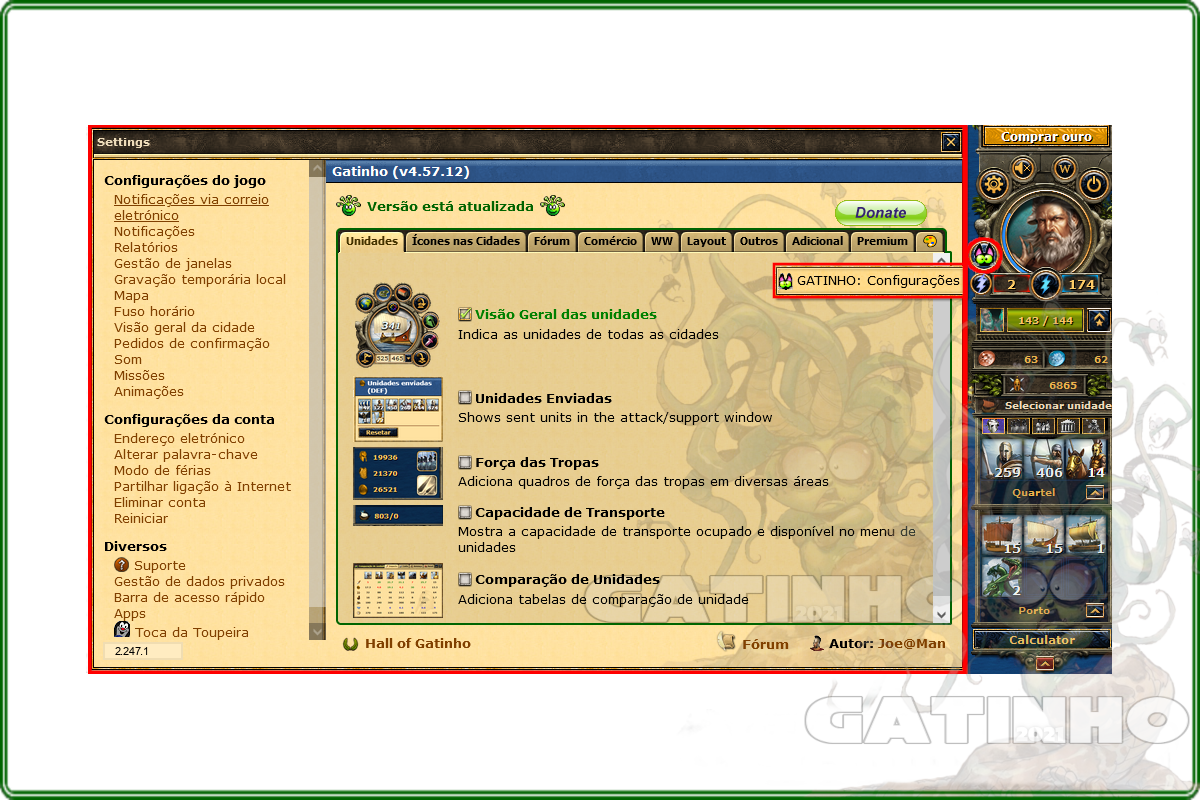 After opening the Settings page "Joe-Gatinho", this is done with the Do Kitty button on the right sidebar of the main page of the game, we verify the existence of 9 different tabs, each of which provide several modules that can be activated or deactivated. according to your need. The "Units" tab is made up of (5) modules, and we are going to talk about them here.