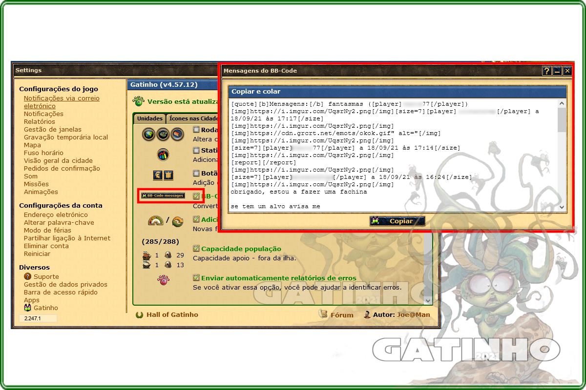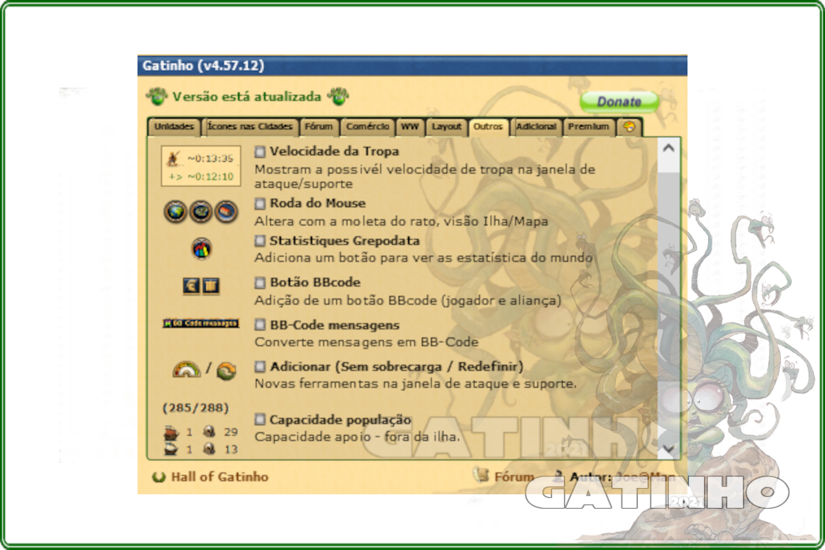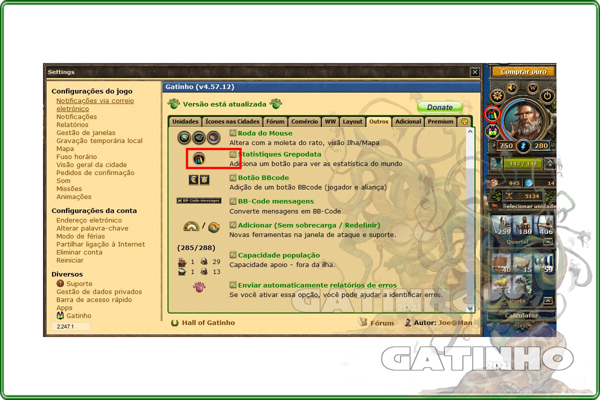 After opening the Settings page "Joe-Gatinho", this is done with the Do Kitty button on the right sidebar of the main page of the game, we verify the existence of 9 different tabs, each of which provide several modules that can be activated or deactivated. according to your need. The "Others" tab is made up of (8) modules, and we are going to talk about them here.