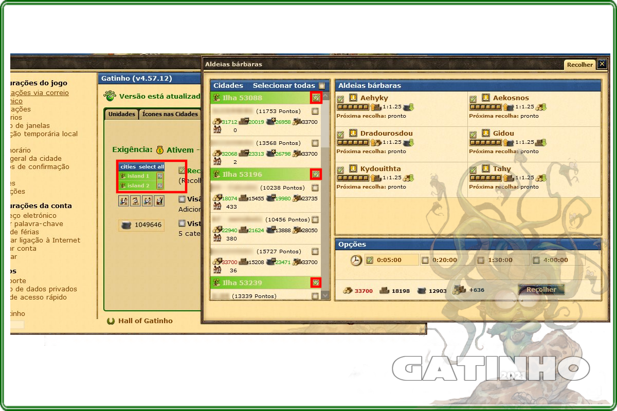 And one more option to collect resources grouped together, for this purpose you must select which cities should collect the resources in order to be able to order them all at once.